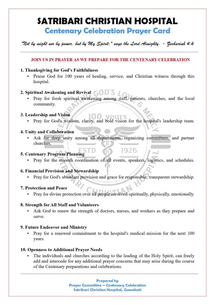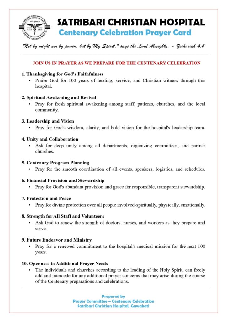 Hallelujah! Hallelujah! Theme: "Celebrating God's Mercy & Love" Psalms 103: 2 & 3 Date: 4th & 5th December 2026 Venue: Satribari Christian Hospital Field "Pray without ceasing" Jubilee Prayer Committee download